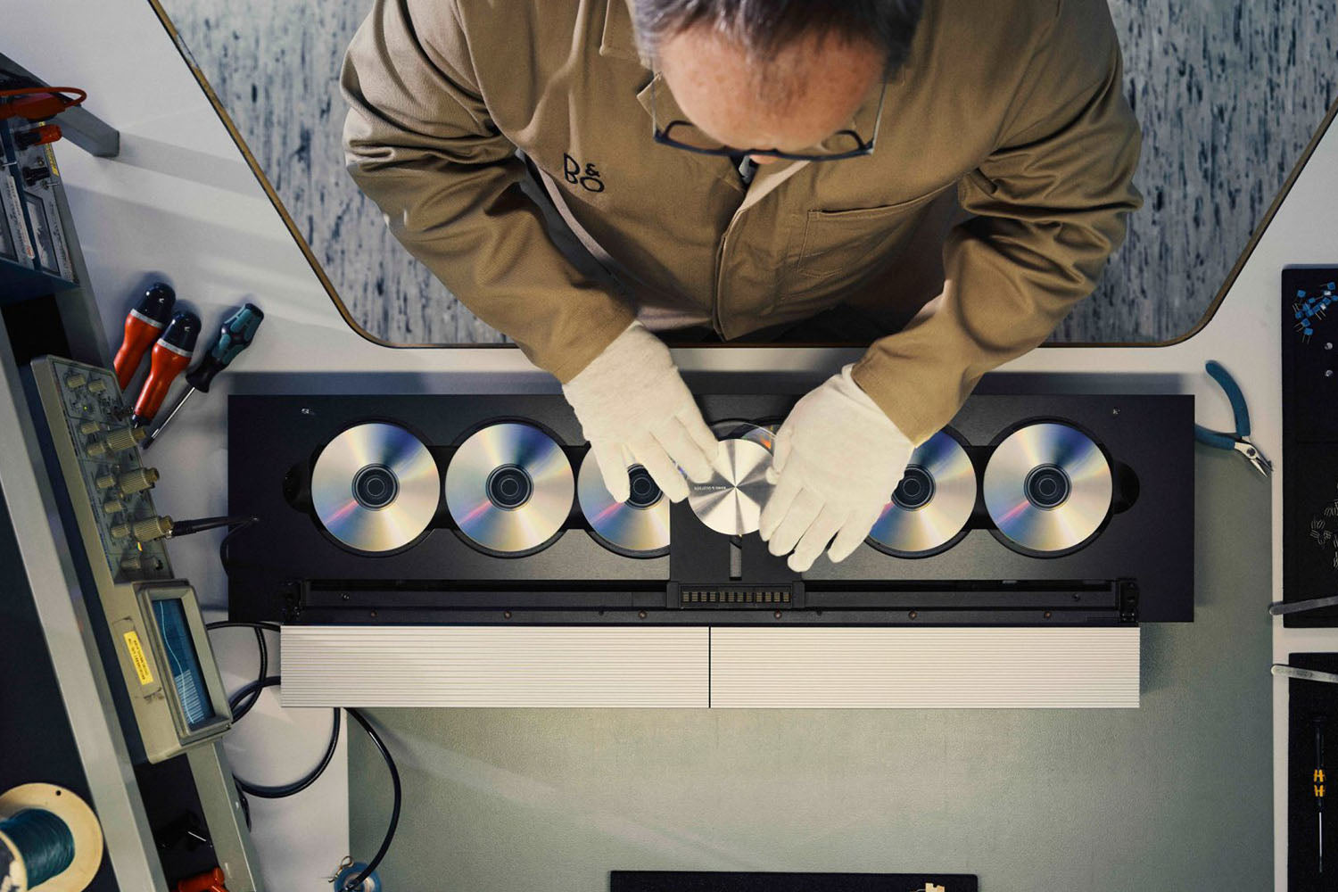 With the Beosystem 9000c music system, Bang & Olufsen brings the original compact disc format back to life and combines it with cutting-edge speaker design.