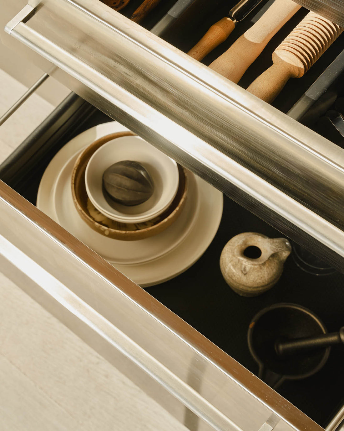 Tüm çekmecelerin yan yüzeyleri, hassas eşyaları korumak için silikon profillerle donatılmıştır.