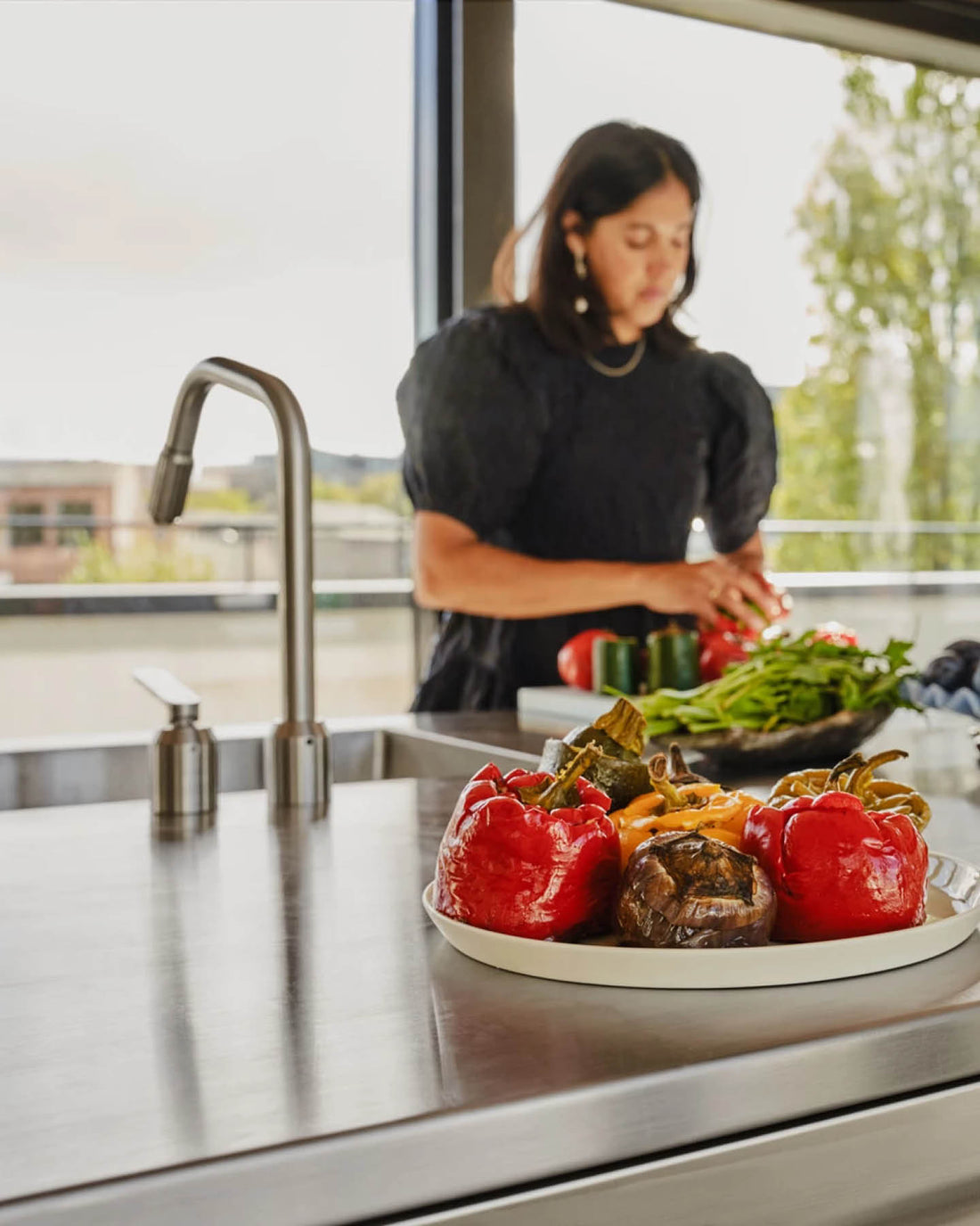 Tezgâhla kusursuz biçimde bütünleşen evye ve estetik olduğu kadar işlevsel Vipp batarya, mutfağı tamamlayan zarif bir dokunuş sunar.