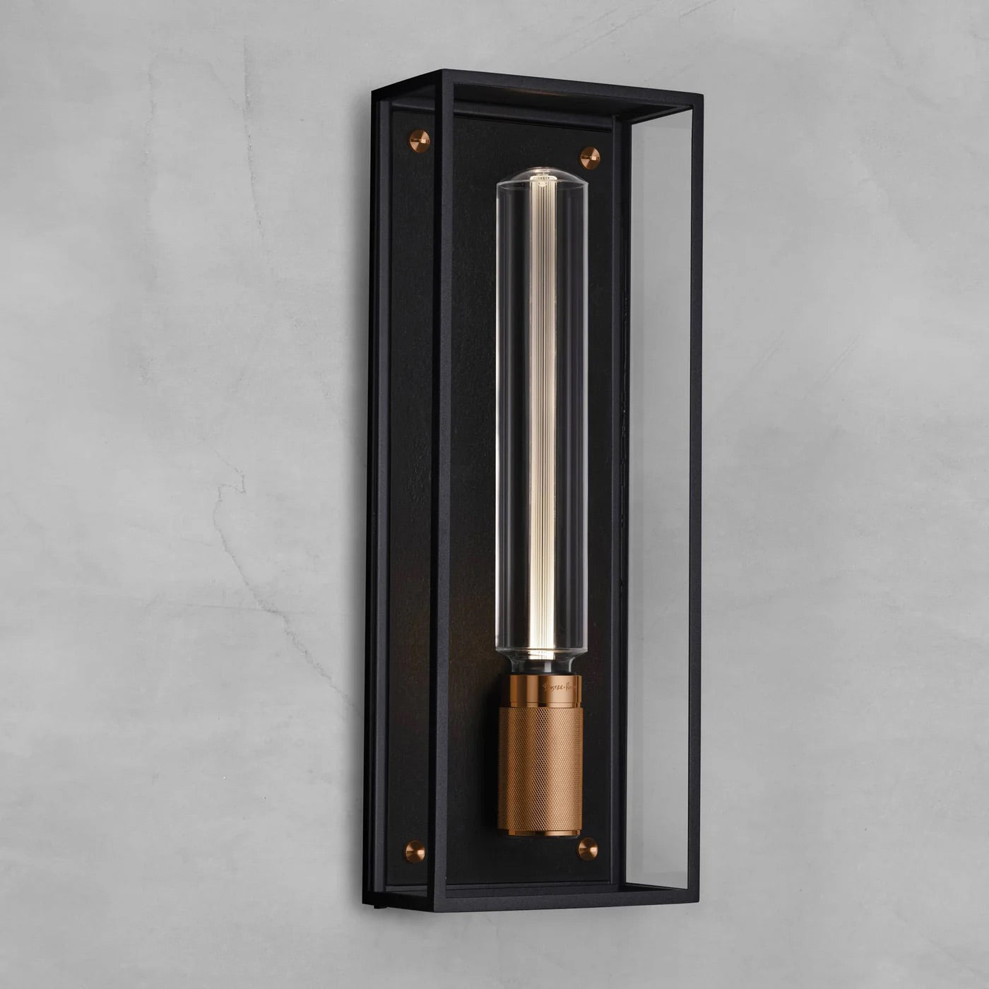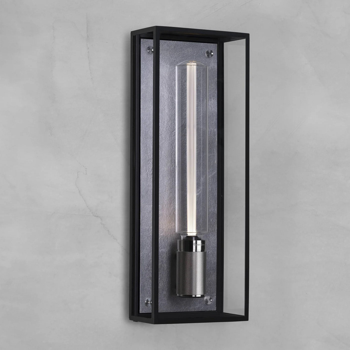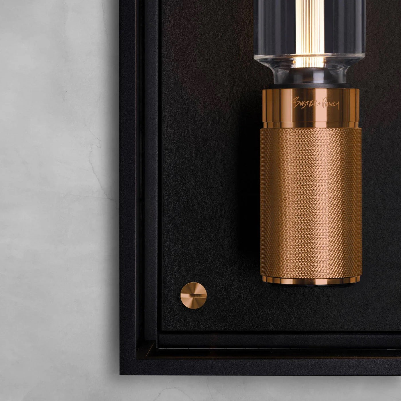 Mat siyah metal ve cam kafesten yapılmış Caged Wet aydınlatma, pirinç döküm metal arka panel ile tamamlanmıştır. Markanın imzası olan logolu vidalara ve sağlam metalden yapılma çapraz tırtıklı bir duya sahiptir. Buster + Punch Caged Wet aydınlatma, IP44 sertifikasıyla banyolar ve dış mekanlar gibi ıslak mekanlarda kullanım için uygundur.