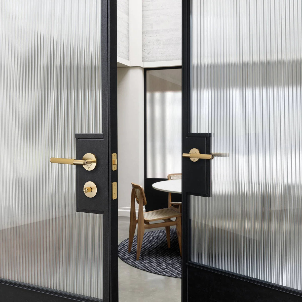 Masif metalden üretilmiş bir çift yaylı kapı kolu. Zarif lineer tırtıklı (linear knurl) yüzey detayı ve torx vida ile tamamlanmıştır. Tüm iç mekân kapılarında kullanım için idealdir ve uyumlu kapı aksesuarlarımızla birlikte kombinlenebilir.