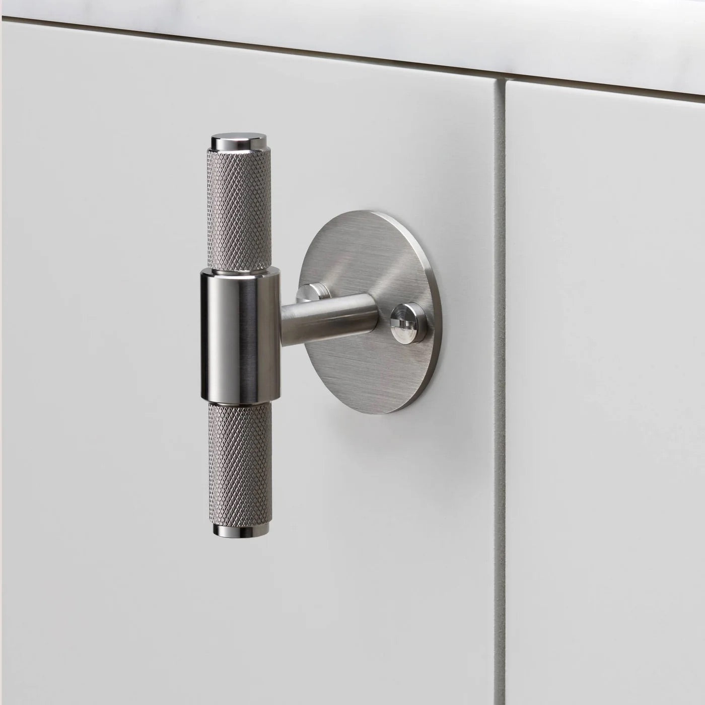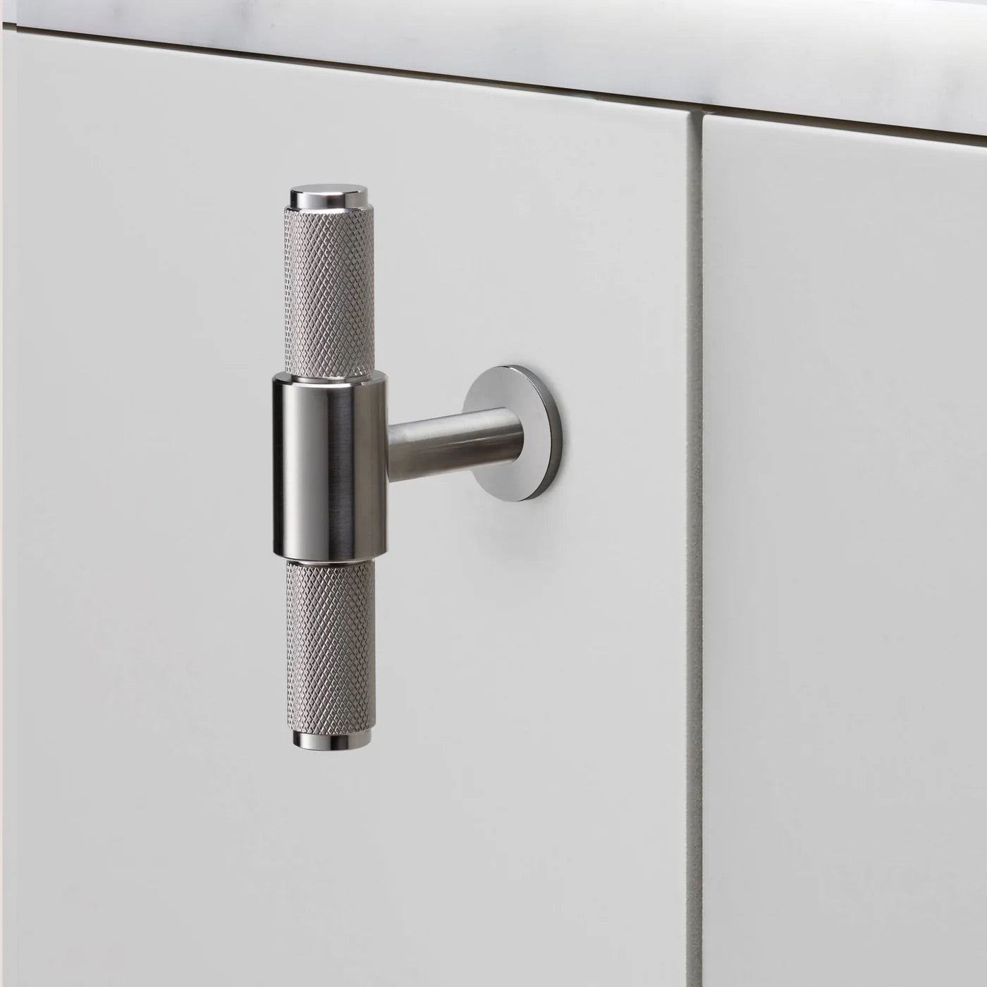 Masif metalden yapılmış T-Bar, elmas kesim tırtıklı detayları ile mutfağınızda yaşam alanlarınızda bulunan dolap ya da çekmecelere şık bir tasarım görüntü katar. Dört farklı metal seçeneği ile dilediğiniz gibi kombinleyebilirsiniz: paslanmaz çelik, pirinç, füme bronz ve siyah.
